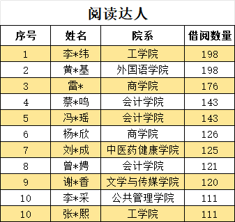 经过图书馆后台数据的统计与评选,大家最期待的获奖名单终于新鲜出炉!快来看看榜上有名的是不是你!