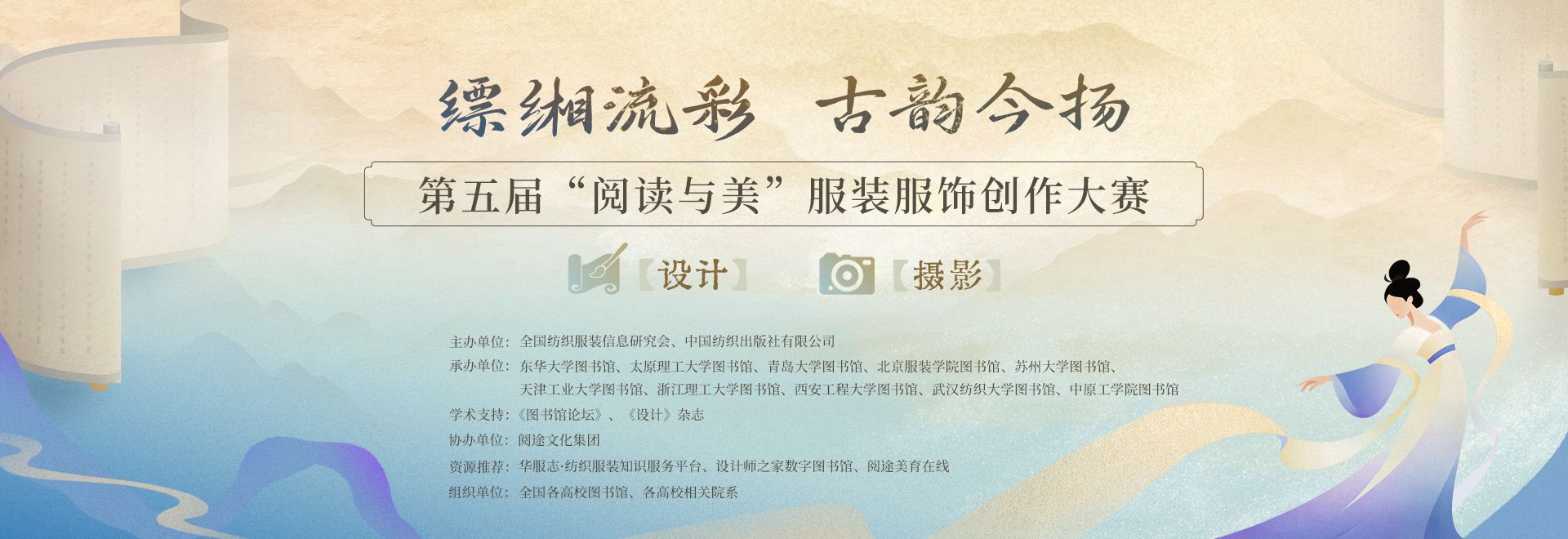 为深入学习贯彻党的二十大精神,推进文化自信自强,铸就社会主义文化新辉煌,落实中共中央办公厅、国务院办公厅《关于实施中华优秀传统文化传承发展工程的意见》,积极响应教育部《关于全面实施学校美育浸润行动的通知》,结合中共中央宣传部《关于促进全民阅读工作的意见》,培养师生创新精神和艺术创作能力,建设书香校园,推动文化繁荣,全国纺织服装信息研究会等决定组织开展第五届“阅读与美”服装服饰创作大赛。